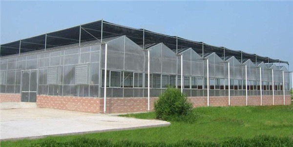采用熱鍍鋅鋼制骨架,覆蓋材料為5mm鋼化玻璃,透光率在九十以上。溫室大棚頂部及四周為專用鋁型材。溫室大棚頂部為雙向開窗,齒輪齒條副傳動(dòng)。根據(jù)用戶需要,溫室大棚兩個(gè)端面可安裝濕簾和風(fēng)機(jī),也可在兩個(gè)端面及側(cè)面安裝鋁型材推拉窗、平開窗或外翻窗。