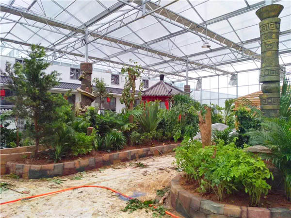 生態(tài)餐廳的結(jié)構(gòu)形式多樣,結(jié)合餐飲規(guī)模的特點(diǎn)可以在結(jié)構(gòu)上采用不同形式,可以采用標(biāo)準(zhǔn)的輕鋼結(jié)構(gòu)連棟文洛式溫室結(jié)構(gòu),也可以采用大型鋼架結(jié)構(gòu)(例如:大跨度H型鋼結(jié)構(gòu)、大跨度管桁架結(jié)構(gòu)等等)或文洛式與大型鋼架結(jié)構(gòu)結(jié)合式,根據(jù)用戶的需求不同,其外觀也可以采用造型溫室,將生態(tài)餐廳與周圍環(huán)境整合為一個(gè)整體。目前生態(tài)餐廳建設(shè)采用的覆蓋材料主要有PC陽光板、玻璃。一些生態(tài)餐廳屋面如果設(shè)計(jì)為半采光屋頂,溫室建設(shè)造價(jià),則可以將保溫彩鋼板和PC陽光板或玻璃間隔搭配使用,減少采光量。